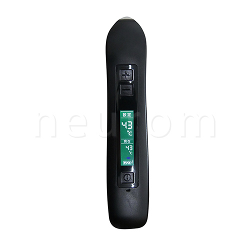 設定は43℃から3℃刻みで5段階あり、プラスマイナス1℃の制度で温度管理をするため、患者様も個人差や治療内容に合わせた施術が可能です。